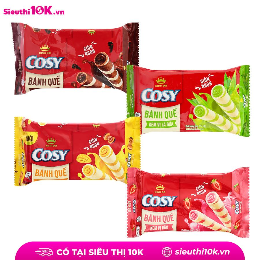 Bánh quế Cosy kem vị dâu/lá dứa/xoài/socola 117,6gr