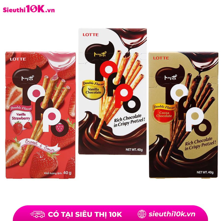 Bánh que Toppo nhân kem dâu/socola cacao/socola 40g
