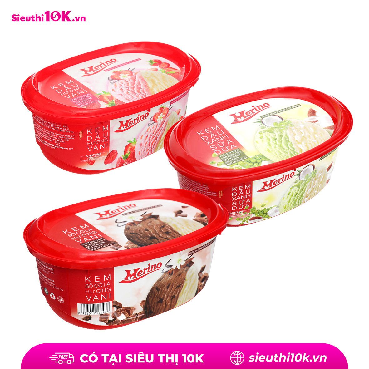 Kem hộp dâu hương vani/dừa/socola Merino 900ml
