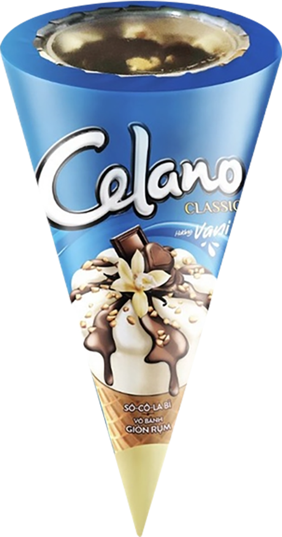 Kem ốc quế Celano hương dâu/vani/socola/việt quất 66g