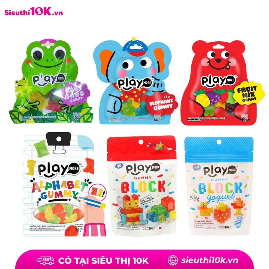 Kẹo dẻo Playmore hình thù dễ thương 6 vị gói 64g