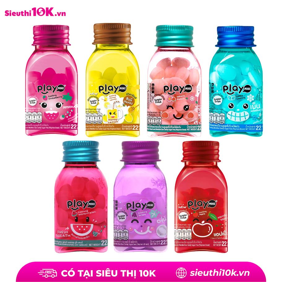 Kẹo Playmore the mát 7 hương vị có đường/không đường hũ 22g