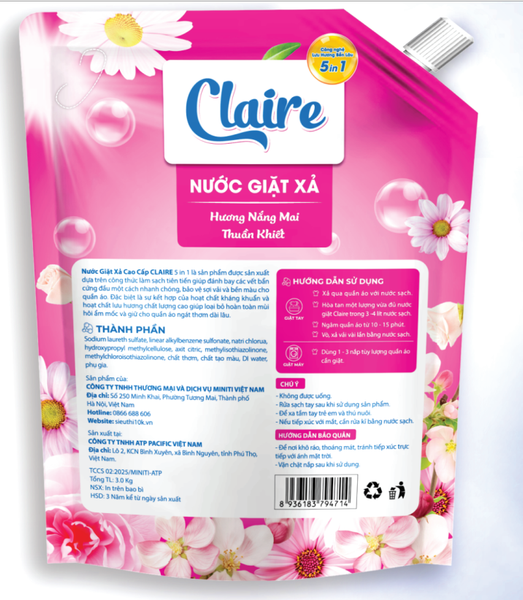 Nước giặt xả Claire 2 Mùi Hương túi 3kg
