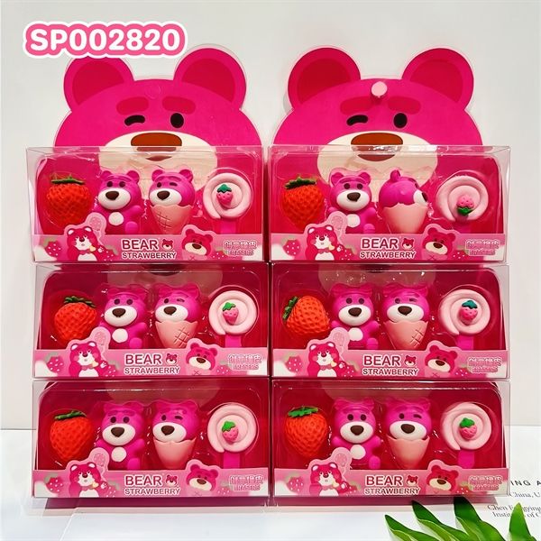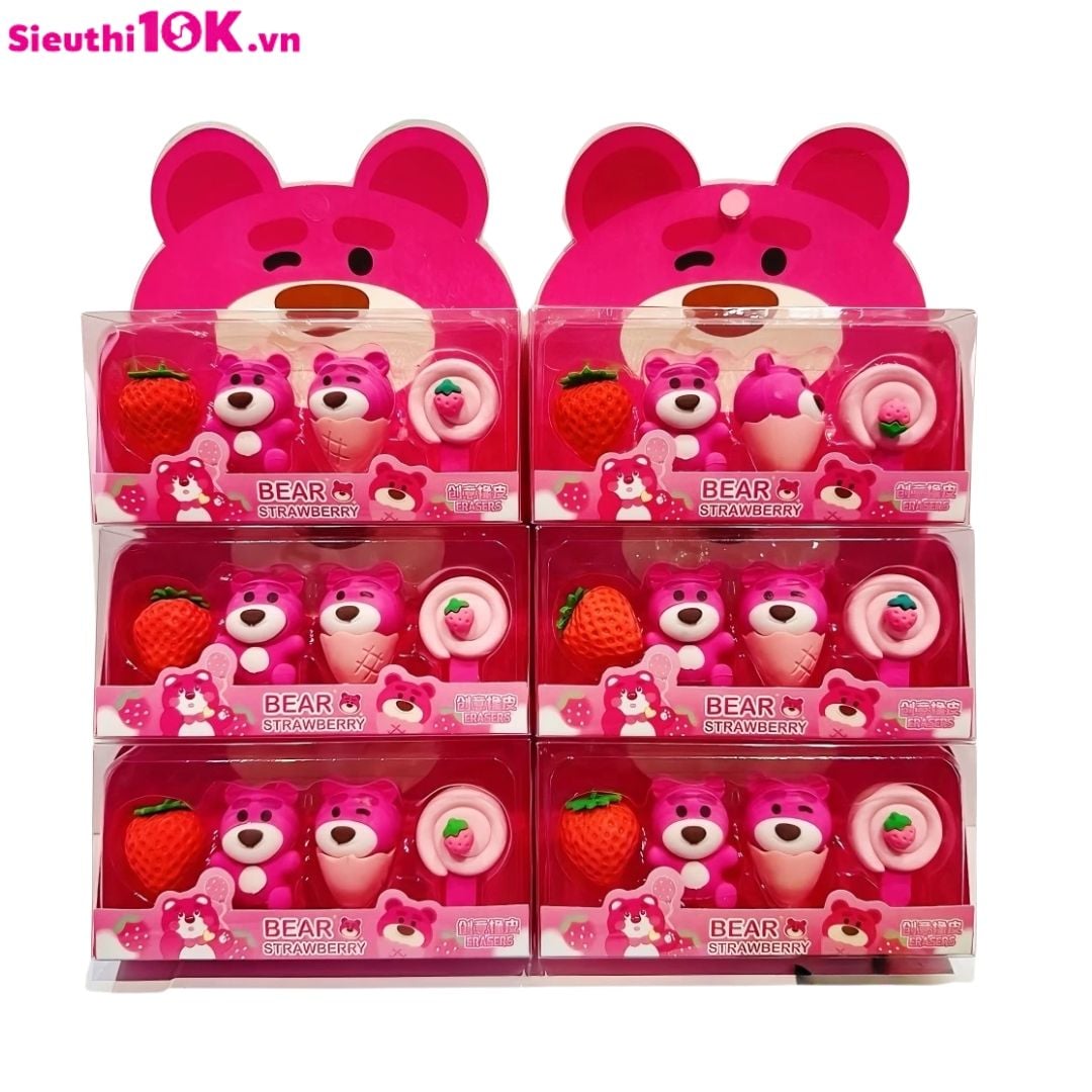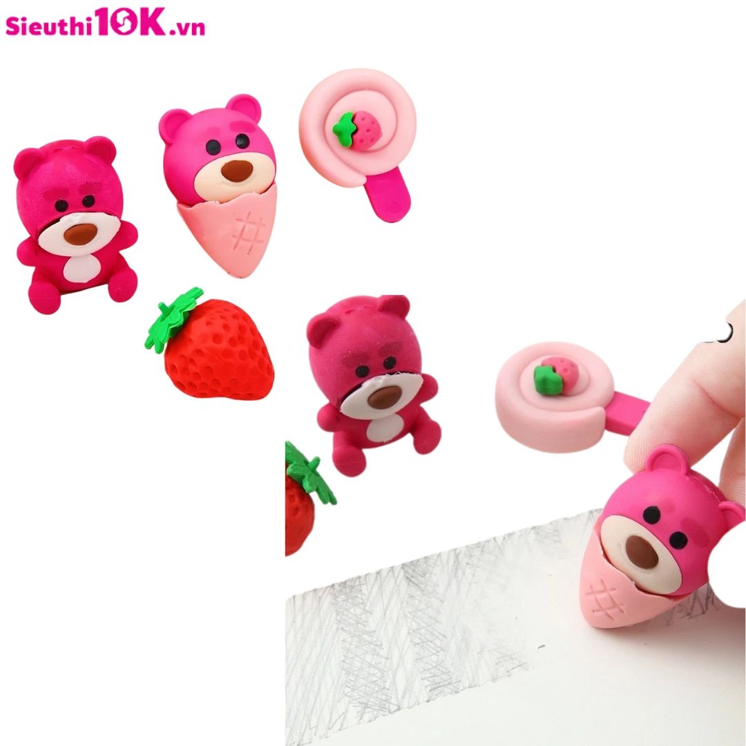 Set 4 Cục Tẩy Bút Chì Hình Gấu Dâu Lotso Hồng Cute