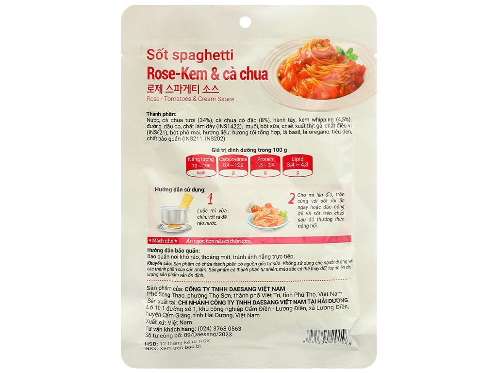 Sốt Spaghetti O'Food vị Rose - kem cà chua gói 120g
