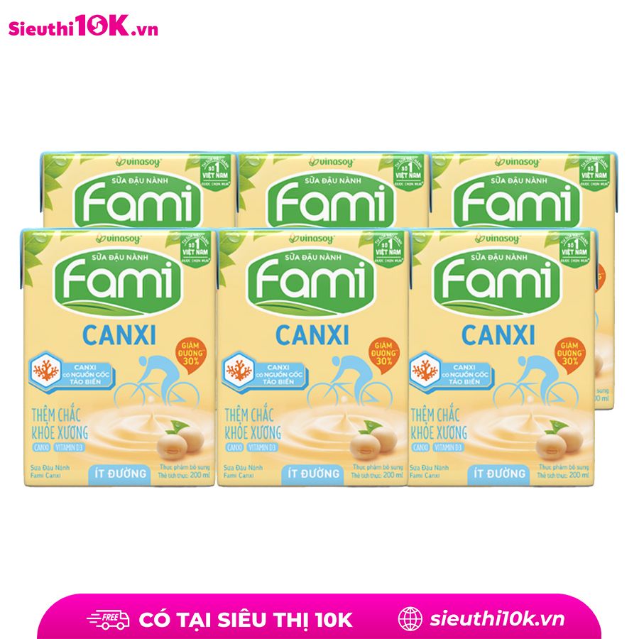 Sữa đậu nành Fami canxi ít đường lốc 6 hộp 200ml