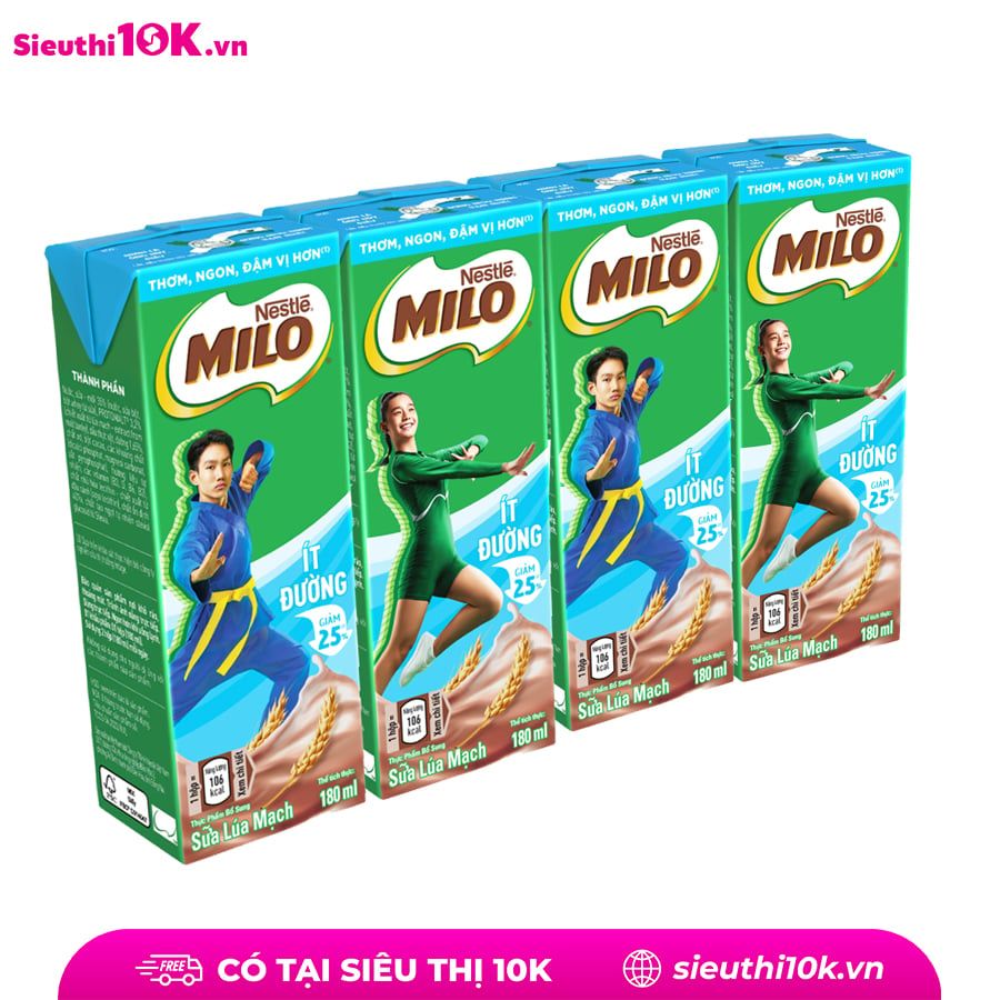 Sữa Milo ít đường Lốc 4*180ML