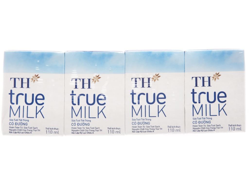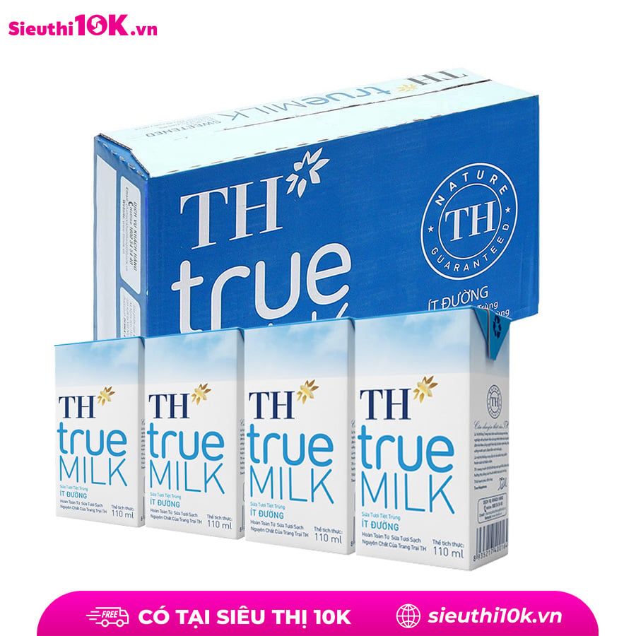 Sữa tiệt trùng ít đường TH True Milk lốc 4*110ml/Lốc 4*180ml