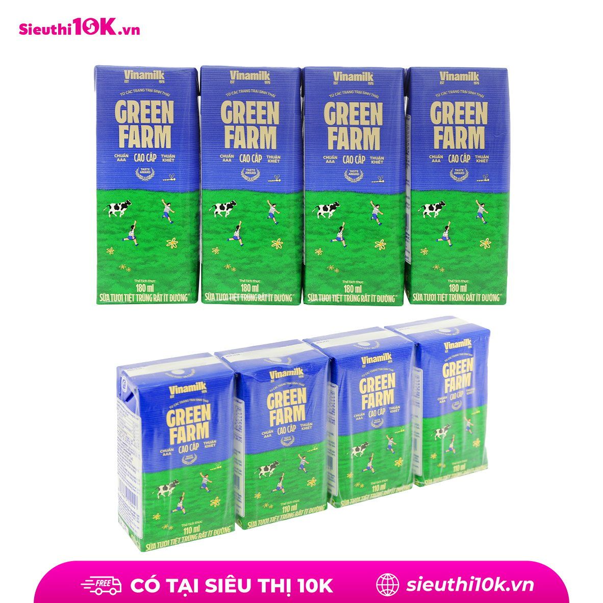 Sữa tiệt trùng Vinamilk Greenfarm ít đường Lốc 4*110ml/Lốc 4*180ml