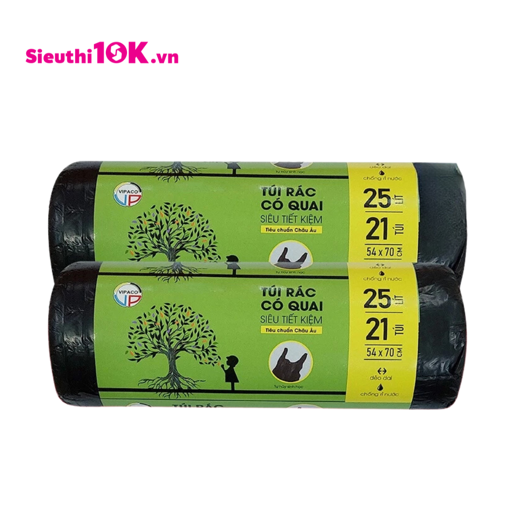 Vipaco Túi Rác Có Quai Tiết Kiệm 25L 54X70Cm 21 Túi 24/T